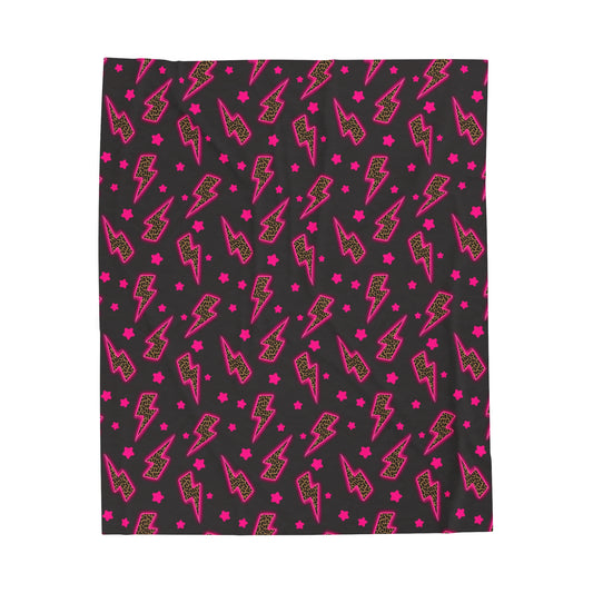 Cheetah With Pink Lightning Bolt Velveteen Plush Blanket