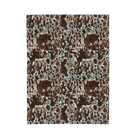 Turquoise and cow print Velveteen Plush Blanket